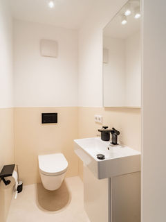 • Modernes Bad mit großzügiger Regendusche, Handtuchwärmer und Föhn